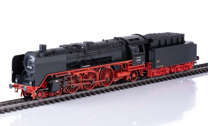 Das erste Modell ist die im Ursprungszustand umgesetzte 01 184 wie sie im Jahr 1936 unterwegs war. Sie ist mit dem großen Tender der Bauart 2´2´T34 gekuppelt. Das H0 Modell ist als 3-Leiter Märklin- bzw. 2-Leiter TRIX Modell erhältlich. Mit den typischen großen Windleitblechen ein wirklich imposantes Modell.